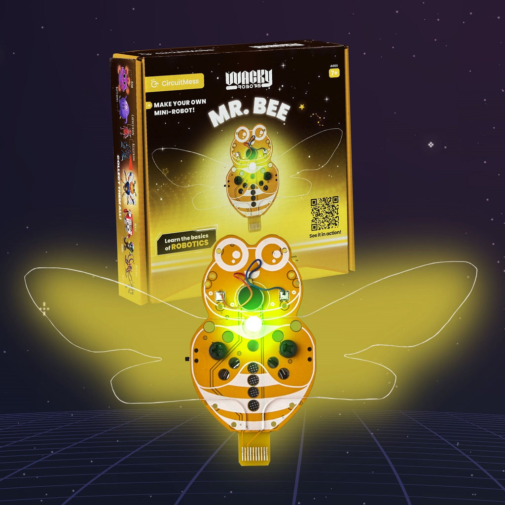 CircuitMess STEM Adventure Mr. Bee is a fantastic resource for Irish primary and secondary school classrooms. Designed to engage students while supporting key curriculum goals, it's perfect for teachers looking to add hands-on, engaging learning tools to their class. CircuitMess STEM Adventure Mr. Bee – DIY Vibrating Robot Kit Mr. Bee is an engaging DIY kit that allows users to build a vibrating robot, combining hands-on assembly with learning about electronic components and motors. This beginner-friendly kit introduces users to fundamental concepts in robotics and electronics in a fun and interactive way. Key Features: Hands-On Assembly: Assemble Mr. Bee yourself, gaining insights into various electronic components and their functions. Vibrational Movement: Mr. Bee utilizes a vibration motor, enabling it to move around and produce buzzing sounds, mimicking a bee's movements. Educational Experience: Learn about vibration motors, resistance, and basic electronic components through the assembly and operation of Mr. Bee. Beginner-Friendly: No prior knowledge of electronics is required; the kit is designed for those new to the field. Assembly Time: The kit is designed to be assembled in approximately 1 hour, making it a quick and enjoyable project. Recommended Age: Suitable for individuals aged 7 and up . Adult supervision is recommended during assembly to enhance the learning experience. Why Choose Mr. Bee? CircuitMess Mr. Bee offers a fun and educational introduction to electronics and robotics. Building and operating your own vibrating robot provides hands-on experience with electronic components and motors, fostering problem-solving skills and creativity. It's an ideal project for young makers and beginners interested in STEM fields. ? This product is ideal for group activities, early finishers, or as part of your classroom resources cupboard. Trusted by educators across Ireland.