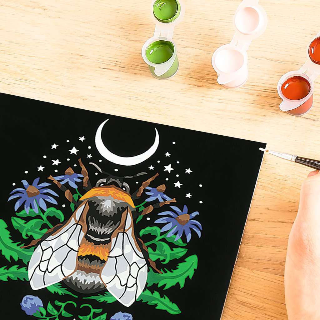 Bring a touch of magic to your creative time with this beautiful paint-by-numbers kit from Ravensburger’s Pixie Cold collection. Designed by German artist Pixie Cold, this striking artwork features a luminous bee surrounded by celestial stars and a crescent moon against a dramatic black background. Perfect for teens and adults, this relaxing kit allows you to create a masterpiece—no prior painting experience required.
