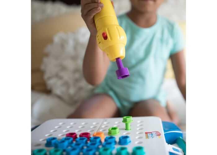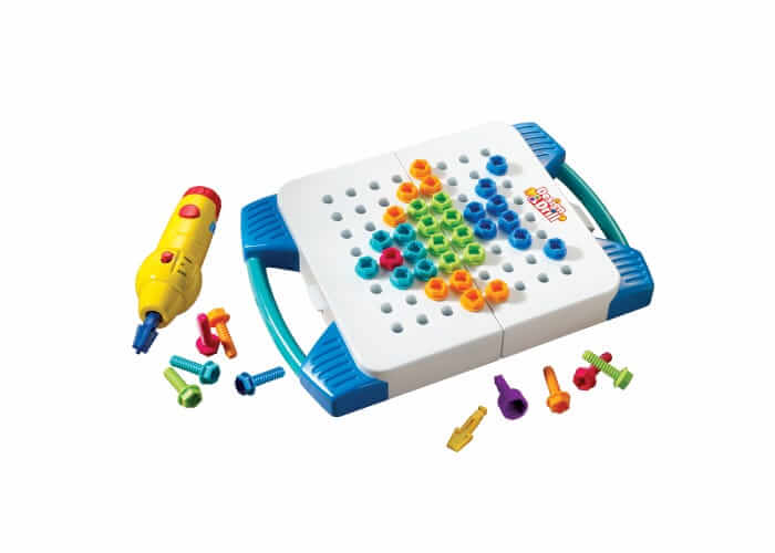 24-piece portable toolbox with real-working toy drill and colorful bolts đź§°