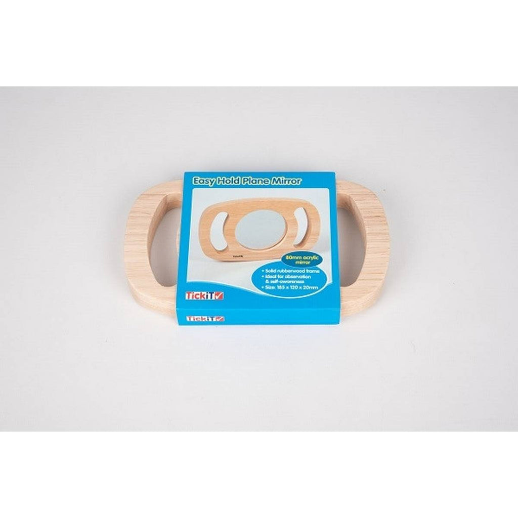 Easy Hold Plane Mirror is a fantastic resource for Irish primary and secondary school classrooms. Designed to engage students while supporting key curriculum goals, it's perfect for teachers looking to add hands-on, engaging learning tools to their class. Easy Hold Plane Mirror Encourage self-reflection and collaborative play with this child-friendly handheld acrylic mirror. Housed in a durable rubberwood frame, the Easy Hold Plane Mirror is designed for young children to hold and manipulate with ease. Perfect for fostering self-awareness and physical development, this mirror is ideal for role play, group play, and observation activities. Key Features: Durable & Child-Friendly: The mirror is housed in a sturdy, smooth rubberwood frame, making it easy for young children to hold and manipulate. Acrylic Mirror Surface: The mirror is made of high-quality acrylic, offering a safe, shatter-resistant surface for self-reflection and exploration. Promotes Self-Awareness: Perfect for activities that support self-reflection, allowing children to observe themselves and develop a sense of identity. Encourages Group Play: Ideal for collaborative play sessions, role play, and shared learning experiences, enhancing social interaction. Supports Developmental Skills: Encourages physical development through fine motor skill practice as children manipulate and explore the mirror. Specifications: Size: 185 x 120mm (mirror diameter: 80mm) Material: Acrylic mirror with rubberwood outer frame Age: Suitable for children aged 12 months and up This mirror is a simple yet effective tool for nurturing early learning, promoting personal development, and enhancing group activities. This product is ideal for group activities, early finishers, or as part of your classroom resources cupboard. Trusted by educators across Ireland.