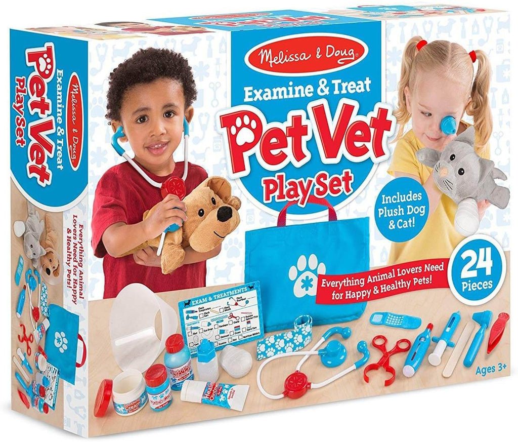 Examine & Treat Pet Vet Play Set Melissa and Doug is a fantastic resource for Irish primary and secondary school classrooms. Designed to engage students while supporting key curriculum goals, it's perfect for teachers looking to add hands-on, engaging learning tools to their class. Pet Vet Play Set: Give young animal lovers everything they need to examine and treat pretend pets with this Pet Vet Play Set from Melissa & Doug! The 24-piece collection for aspiring veterinarians three and older comes with two adorable plush pets (a dog and a cat), and accessories galore, including a stethoscope, thermometer, syringe, ear scope, tweezers, and clamp. There are bottles, tubes, and tubs of pretend treatments and ointments, bandages and a cast for boo-boos, and even a neck "cone" to keep pets from licking! Everything, including a reusable examination checklist, stores in a handy tote bag, so little vets can make house calls! Additional Info: Age: 3+ This product is ideal for group activities, early finishers, or as part of your classroom resources cupboard. Trusted by educators across Ireland.