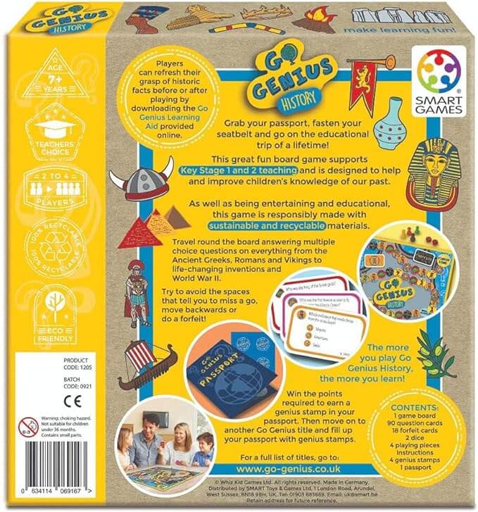 Go Genius History is a fantastic resource for Irish primary and secondary school classrooms. Designed to engage students while supporting key curriculum goals, it's perfect for teachers looking to add hands-on, engaging learning tools to their class. Go Genius – The Board Game is an award-winning range of subject-themed educational board games currently Maths, English, World, Science, History and Football. Players go on the educational trip of a lifetime – they travel round the board, answering multiple choice questions with 3 different levels of difficulty trying to avoid the minefield of spaces that demand they miss a turn, go back 5 spaces, do a forfeit etc. Play ends when the first player crosses the finish line. Scores are added up and the person with the highest score wins. Anyone who gets from start to finish and scores more than 15 points can add a genius sticker (included in the games) to their Go Genius Passport (also included in the games for children to personalise). As few people are natural geniuses it may take a few games to score 15 points. This product is ideal for group activities, early finishers, or as part of your classroom resources cupboard. Trusted by educators across Ireland.