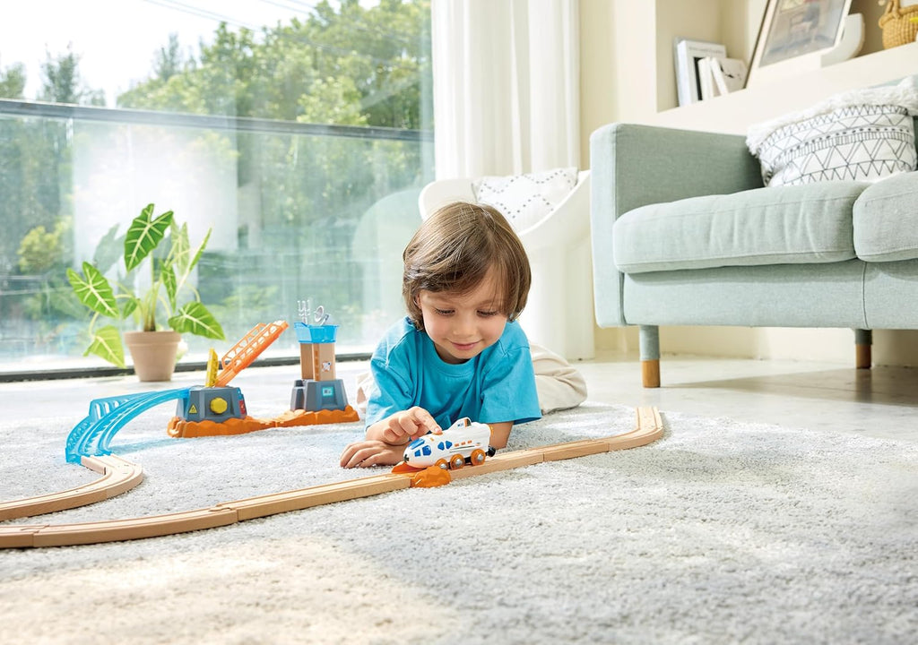 Launch into adventure with the Hape Dual-Mode Space Shuttle & Train! This clever 2-in-1 toy transforms from a space shuttle into a train, combining imaginative play with interactive lights, sounds, and easy USB charging for uninterrupted exploration.