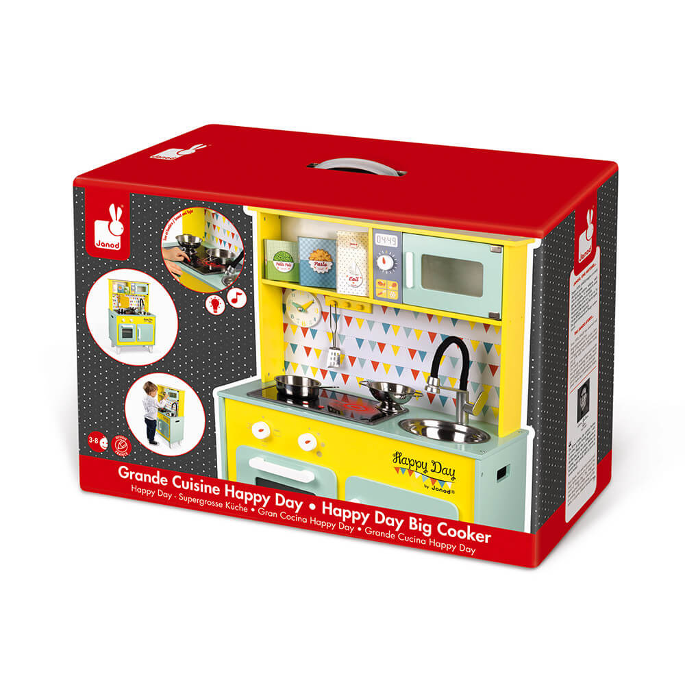 Janod - Big Kids Wooden Kitchen - Happy Day - Pretend Play Toy Kitchen - Age 3 + is a fantastic resource for Irish primary and secondary school classrooms. Designed to engage students while supporting key curriculum goals, it's perfect for teachers looking to add hands-on, engaging learning tools to their class. Prepare tasty little dishes for your friends, just like mom and dad, with this beautiful kids wooden kitchen! The all-wood Happy Day Cooker includes a clock, spoons peg, metal sink, 2 rotating buttons with noise. It also includes a LED cooktop that makes sound. When you press on the red buttons once, you can turn on the lights of the induction hobs; when you press on the red buttons twice, you can hear the sound of boiling water. The light and sound turn off by themselves after 30 seconds or if you press a third time on the red buttons. 7 accessories included : 1 metal spoon, 1 metal frying pan, 1 metal colander, 1 potholder and 3 cardboard food boxes. Just like a real kitchen, it features two dials with sound effects to turn on the two induction cookers, an oven and a cupboard with magnetic doors. Height of the worktop : 50 cm. This product is ideal for group activities, early finishers, or as part of your classroom resources cupboard. Trusted by educators across Ireland.