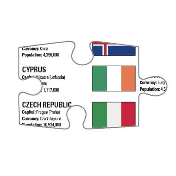 Jigraphy Flags, Capitals, Currencies and Populations is a fantastic resource for Irish primary and secondary school classrooms. Designed to engage students while supporting key curriculum goals, it's perfect for teachers looking to add hands-on, engaging learning tools to their class. A Jigsaw, A Quiz And A Whole World Of Information Discover each country's capital city, see if you know the national currency and find out the population too. The 121 jigsaw pieces have been cleverly cut as well to make the puzzle that bit more challenging! Follow the image included, or use your own knowledge to work out where each piece should be positioned! The finished puzzle features all 193 member states of the United Nations, ordered alphabetically by continent. Once you have finished building the puzzle, there is a multi-level quiz too! The finished puzzle is approximately 70cm x 70cm. Age: 6 to adult Skills: Sequencing, Strategic Planning, Visual Perception This product is ideal for group activities, early finishers, or as part of your classroom resources cupboard. Trusted by educators across Ireland.
