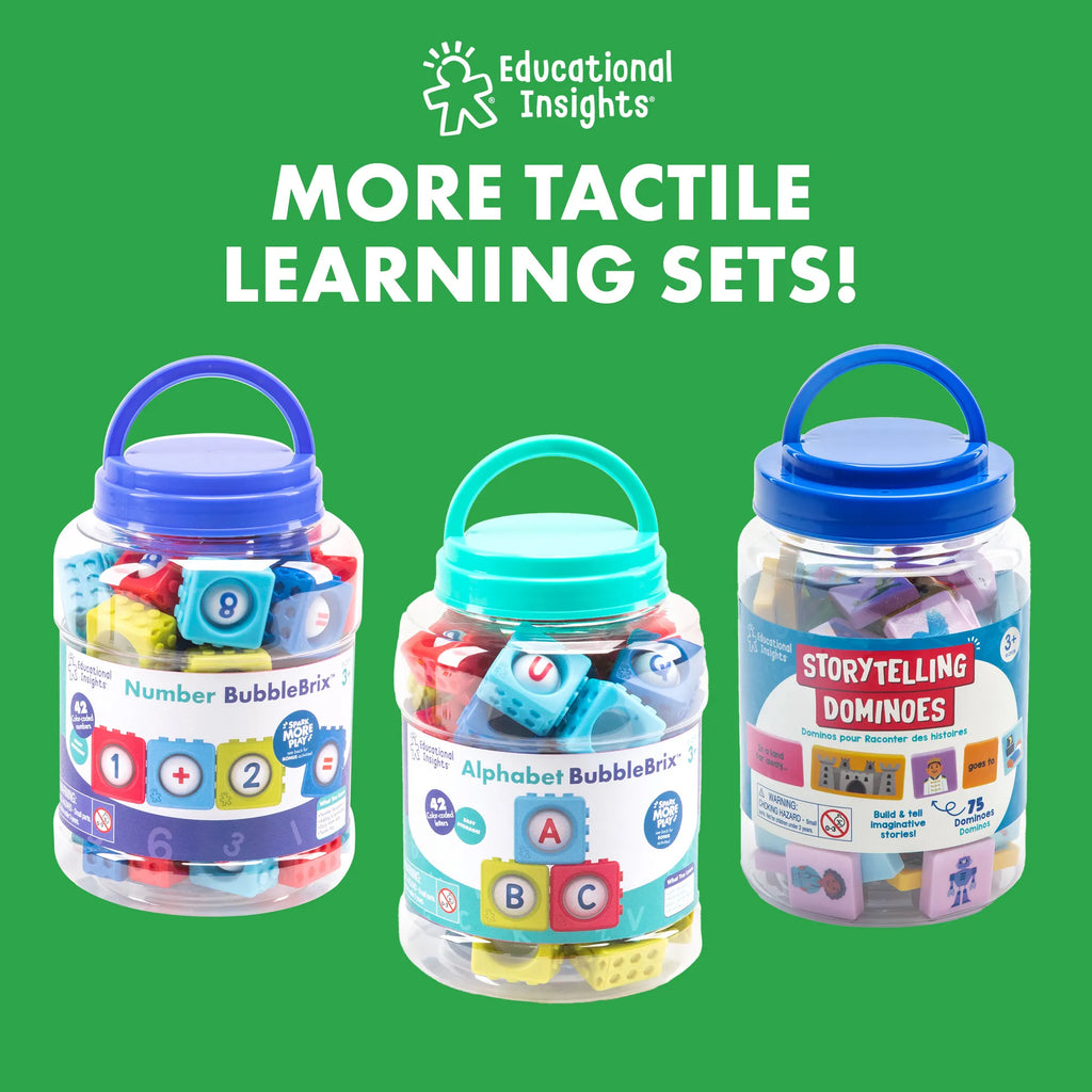 Includes 42 colorful, snap-together lowercase letter BubbleBrix blocks that children can connect to spell words