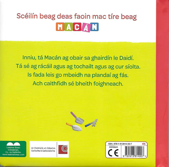 Macan ag obair sa ghairdin is a fantastic resource for Irish primary and secondary school classrooms. Designed to engage students while supporting key curriculum goals, it's perfect for teachers looking to add hands-on, engaging learning tools to their class. Macán ag Obair sa Ghairdín is a charming Irish-language picture book that follows Macán the kitten as he helps out in the garden. Surrounded by plants, tools, and the wonders of nature, Macán discovers the joy of digging, planting, and working outdoors. Introduces young children to the basics of gardening in a playful way Encourages curiosity, patience, and a love for nature Soft, colourful illustrations perfect for early readers Written in simple Irish, ideal for preschoolers or beginner Irish learners Suitable for ages 2 to 6 A gentle and engaging story that connects children with the natural world through exploration and fun. This product is ideal for group activities, early finishers, or as part of your classroom resources cupboard. Trusted by educators across Ireland.