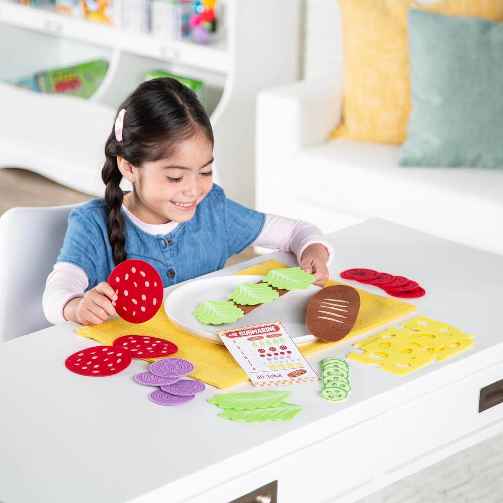 Math Sandwich: Preschool Math Game is a fantastic resource for Irish primary and secondary school classrooms. Designed to engage students while supporting key curriculum goals, it's perfect for teachers looking to add hands-on, engaging learning tools to their class. Games That Teach: Toddler educational toys like Math Sandwich introduce preschool math skills like counting numbers and basic addition as they count out felt food ingredients to make pretend sandwiches Open Your Own Sandwich Shop: Encourage imaginative play with this pretend restaurant toddler learning activity that allows kids ages 3 and up to run their own sandwich shop Build Sandwiches from Durable Felt Food Pieces: Over 100 colorful vegetable, meat and cheese felt food materials are made to withstand enthusiastic play as hands-on toddler counting toys Follow the Menu Cards: Use the 10 menu cards to make specific sandwich combinations, enhancing problem-solving skills and following instructions, or get creative by making up your own sandwich recipes Includes over 100 felt sandwich pieces, 10 menu cards, dry erase marker, guest check tablet and glassine envelopes for the end sandwich (for ages 3 & up) This product is ideal for group activities, early finishers, or as part of your classroom resources cupboard. Trusted by educators across Ireland.