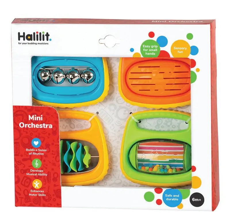 Mini Orchestra is a fantastic resource for Irish primary and secondary school classrooms. Designed to engage students while supporting key curriculum goals, it's perfect for teachers looking to add hands-on, engaging learning tools to their class. The Mini Orchestra Musical Instrument set is the perfect introduction to the wonderful world of music and rhythm. Designed to be safe for even the smallest of babies, the Rhythm Pals feature four fascinating instruments which stimulate baby’s discovery of sounds. The delightful musical instrument set includes richly coloured My Bell, Tambaring, Rock ‘n Roll Rattle and Clip Clap instruments, all of which feature a textured handle for easy grip. Suitable from 6 months. Colours May Vary This product is ideal for group activities, early finishers, or as part of your classroom resources cupboard. Trusted by educators across Ireland.