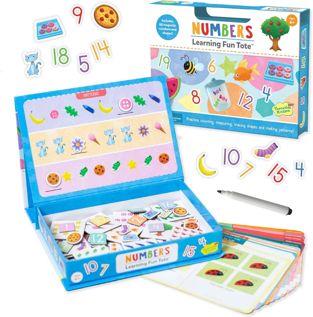 Numbers Learning Fun Tote is a fantastic resource for Irish primary and secondary school classrooms. Designed to engage students while supporting key curriculum goals, it's perfect for teachers looking to add hands-on, engaging learning tools to their class. LEARNING FUN: An engaging way for early learners to practice counting, measuring, tracing shapes and making patterns. Children will build fine motor skills, develop their math skills and establish a strong foundation for learning mathematical skills. TEACHER DESIGNED: A variety of teacher-designed activities provide the fundamentals needed for a lifetime of counting adventures. HOME OR CLASSROOM: 12 reusable activity sheets and over 100 magnets are designed for one-on-one learning at home or with many children in a classroom. TOGETHER TIME: Parents can use the included learning sheets and parent guide to help their little ones learn and play while spending time with their child. For boys and girls ages 4 and up. INCLUDES: 80 magnets, 11 learning sheets, 5 number matching sheets, 1 pattern sheet, 2 counting fun sheets, 1 dot to dot sheet, 1 fun with shapes sheet, 1 measuring fun/number line sheet, 1 dry erase marker, and a parent guide. Age 4+ This product is ideal for group activities, early finishers, or as part of your classroom resources cupboard. Trusted by educators across Ireland.