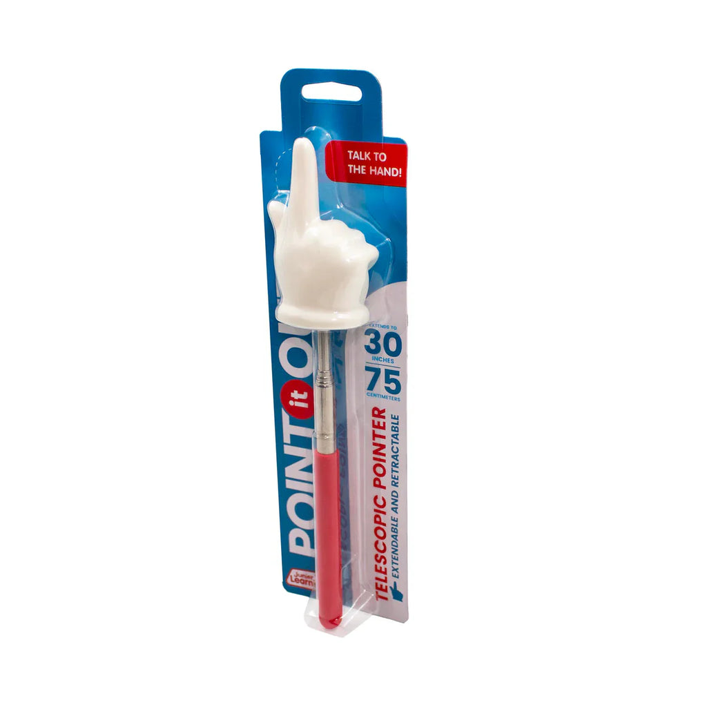 Point it out - Telescopic Pointer is a fantastic resource for Irish primary and secondary school classrooms. Designed to engage students while supporting key curriculum goals, it's perfect for teachers looking to add hands-on, engaging learning tools to their class. Point It Out - Telescopic Pointer The Point It Out Telescopic Pointer is the perfect tool to make your presentations more engaging and interactive! ?? This retractable pointer extends up to 73cm , allowing you to easily reach the whiteboard, screen, or any display from a distance. The plastic finger at the end ensures precise pointing, helping you highlight key points with accuracy. ?? Key Features: Telescopic design for adjustable length (up to 73cm) Precise plastic finger for accurate pointing Ideal for presentations, classrooms, or meetings Easy to store and carry , as it retracts for convenience Enhance your lessons, presentations, and discussions with the Point It Out Telescopic Pointer and make every point stand out! ???? This product is ideal for group activities, early finishers, or as part of your classroom resources cupboard. Trusted by educators across Ireland.
