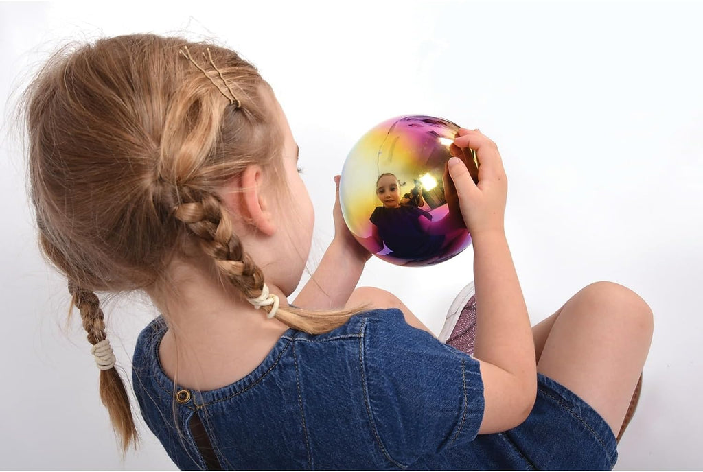 Sensory Reflective Colour Burst Balls is a fantastic resource for Irish primary and secondary school classrooms. Designed to engage students while supporting key curriculum goals, it's perfect for teachers looking to add hands-on, engaging learning tools to their class. Sensory Reflective Colour Burst Balls – Set of 4 Engage children in multisensory exploration with this captivating set of stainless steel balls. Each ball features a smooth, reflective surface that distorts reflections, offering a unique visual experience similar to a fish-eye lens. The color burst effect adds a spectrum of bright metallic shades on each ball, increasing the intrigue. Key Features: Multi-Sensory Engagement: The reflective surfaces encourage visual stimulation and curiosity, as children observe distorted images of themselves and their surroundings. Varied Sizes: The set includes four balls with approximate diameters of 6 cm, 8 cm, 10 cm, and 15 cm, providing a range of tactile experiences. Durable Construction: Made from high-quality, tarnish-resistant stainless steel, these balls are robust yet lightweight, making them easy for young children to handle. Versatile Use: Suitable for both indoor and outdoor play, these balls can be used in various settings to explore light, reflection, and perception. Safe for All Ages: Designed without seams or holes, the balls are hygienic and safe for children from birth onwards. These sensory balls are not only fun to play with but also serve as educational tools that promote cognitive development and motor skills. Their unique reflective properties make them a valuable addition to any early learning environment. This product is ideal for group activities, early finishers, or as part of your classroom resources cupboard. Trusted by educators across Ireland.