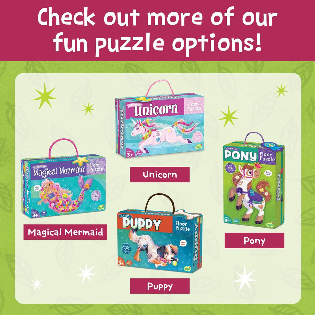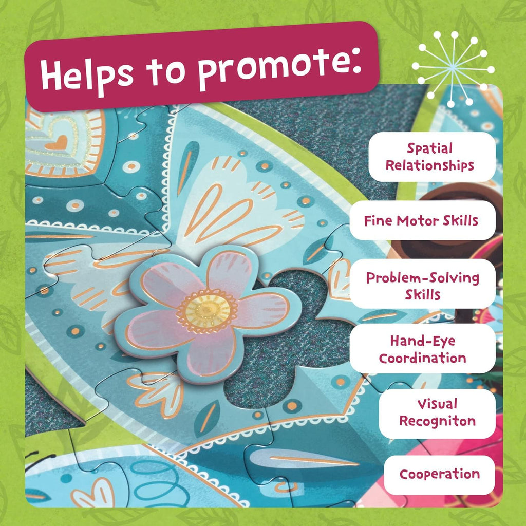 Shimmery fairy floor puzzle is a fantastic resource for Irish primary and secondary school classrooms. Designed to engage students while supporting key curriculum goals, it's perfect for teachers looking to add hands-on, engaging learning tools to their class. Shimmery Fairy Floor Puzzle – Magical Fun and Learning! Enter a world of magic and sparkle with the Shimmery Fairy Floor Puzzle ! This enchanting puzzle is designed to engage young minds while helping them develop key skills through fun, hands-on play. With its bright colors, glittery accents, and unique fairy theme, this puzzle is sure to capture the imagination of children aged 5 and up . Whether at home or in the classroom, this puzzle is perfect for encouraging cooperation, problem-solving, and fine motor development. Features: Toys That Teach: As kids piece together the 50 large, easy-to-handle pieces , they learn visual recognition , and enhance their fine-motor skills and problem-solving abilities . The tactile experience helps boost confidence as children see their puzzle come together. Unique and Magical Design: This fairy-themed floor puzzle features shiny foil and glitter accents , making each piece sparkle as it's put in place. With uniquely shaped pieces , such as a ladybug , heart , and other glittery shapes, this puzzle brings an extra layer of creativity to each assembly. Classroom and Group Fun: Perfect for classrooms, daycares, or playdates, the Shimmery Fairy Floor Puzzle is a great way for children to work together. The puzzle pieces encourage cooperation and teamwork , while the large format makes it easy to use in group activities. Plus, it comes with a box that has a corded handle , making it easy to take the fun on the go. Heart & Soul: At Peaceable Kingdom, we believe in fostering cooperation , kindness , and caring through play. Our products inspire teamwork and connection through imaginative activities that are both fun and educational. Giant-Sized Fun: The puzzle's large pieces are designed with young children in mind. Once completed, the puzzle measures an impressive nearly 3 feet by 2 feet , providing an exciting challenge for kids. It’s the perfect activity for solo play or group fun, reinforcing key skills while sparking creativity. Age Recommendation: Suitable for ages 5 and up , this delightful puzzle provides hours of entertainment while helping children develop important skills. This product is ideal for group activities, early finishers, or as part of your classroom resources cupboard. Trusted by educators across Ireland.