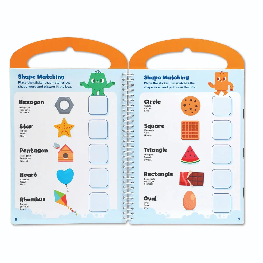 Includes 25 activity pages featuring over 100 reusable 3‑D puffy stickers to explore colours, numbers, and shapes 🔢