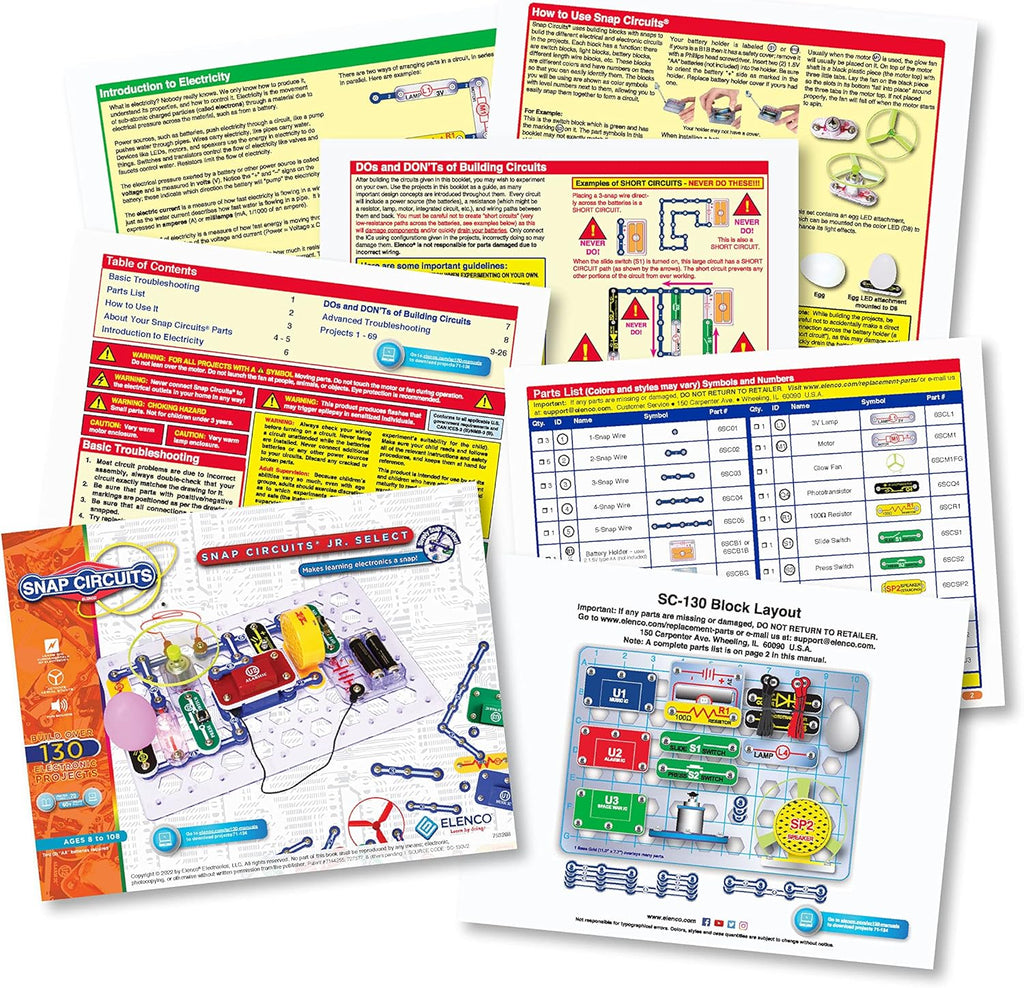 Includes motors, switches, resistors, lamps, sensors, and snap wires