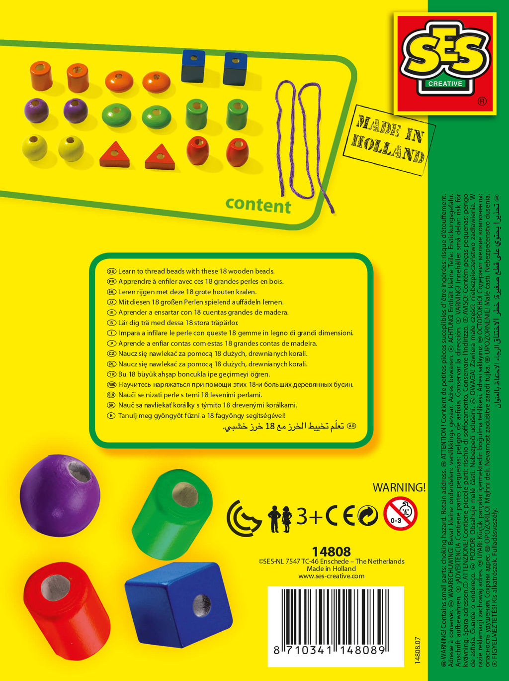Threading Beads Set is a fantastic resource for Irish primary and secondary school classrooms. Designed to engage students while supporting key curriculum goals, it's perfect for teachers looking to add hands-on, engaging learning tools to their class. The best way of learning how to do something is through practice, so this kit provides the perfect opportunity to do so in a safe and fun way. A fun and unique way of learning to thread beads; the set contains eighteen beads of varying shapes and colours with holes ready to thread string through – and then wear as a necklace! A great way of developing hand-eye co-ordination skills in young children. SES has been the specialist in creative toys for more than 40 years. Child development is the central concept in the development of our products. As development is important during the early years, it is important that a child has the opportunity to develop his or her talents and to use their creativity. Besides developing creativity, safety and quality are the most important aspects of all our products! The products we develop are essential to the different developmental stages of any child. This product is ideal for group activities, early finishers, or as part of your classroom resources cupboard. Trusted by educators across Ireland.