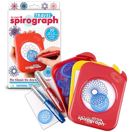 • Travel Spirograph Design Toy with built-in design ring, work surface and storage tray